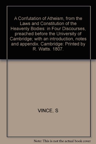 And we can channel our knowledge to others, Very useful not this A Confutation of Atheism, from the Laws and Constitution of the Heavenly Bodies: in Four Discourses, preached before the University of Cambridge; with an introduction, notes and appendix. Cambridge: Printed by R. Watts. 1807. PDF Online book.